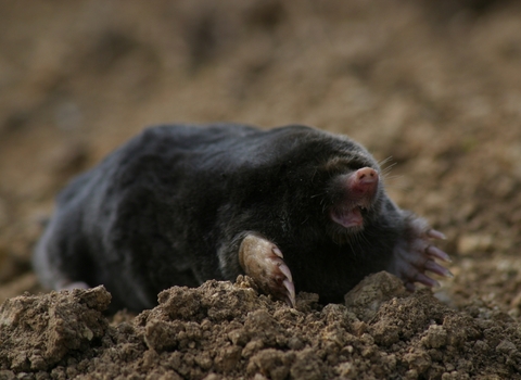 A mole can dig up to 20 metres of tunnel in a day using its spade-like forepaws to effectively breaststroke its way through the soil. Every now and again, loose soil is pushed up to the surface, resulting in what we see as a mole hill.The mole's velvety coat helps it to move easily through the soil, and its mouth and nose are protected from debris by their down-facing position.
